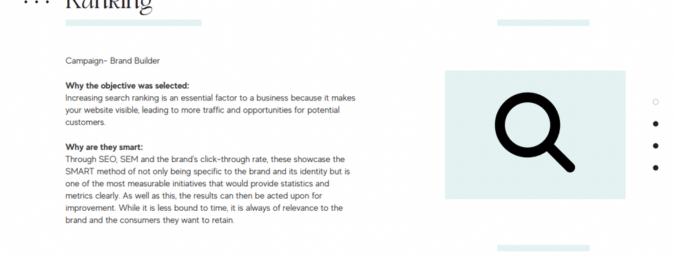 Coming into this without completing assessment one on this brand, I did feel out of the loop and was struggling to gauge what was expected and needed from me. It should be noted as well that this assessment was quite big and was set to take up a lot of time in a pair, let alone if I was doing it by myself. After talking with my teammate and delegating roles, I was set to do objective one of our recommended digital marketing strategies and, within this, the three tactics that went with the objective. And as well as this, the content calendar for social and digital media is based on our three objectives and tactics for each.